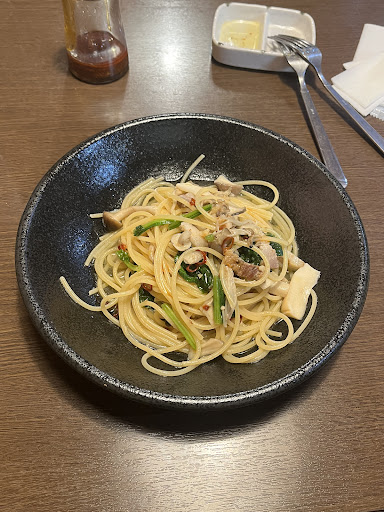 Lunch set for 1100¥ come with one drink, a bread, small salad and pasta/pizza/risotto. The food was decent for the price. You can get more pasta or risotto...