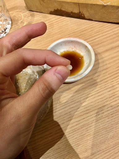 We were then shown to our seat at the bar, and expected to see all the great fish and seafood out on beds of ice, but everything was bare! Instead we sat at the bar beside a few dusty corals and sake bottles (which were very dusty).