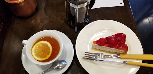 Retro-style cafe with wooden booths, serving set breakfasts, simple snacks, coffee & desserts.