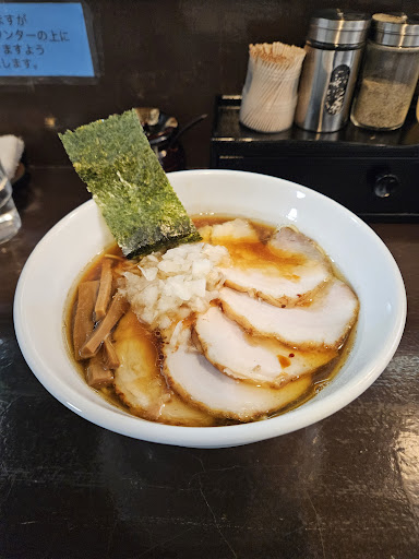 Read more中央線の西八王子駅周辺は、ラーメン店が沢山あり激戦区です。近くには有名な○○門がありますが、前から気になる弥栄に伺わせていただきました。こちらは、メインメニューで八王子醤油ラーメンと塩ラーメンに加えて背脂ラーメンがありました。事前の食券購入となります。私は、肉バラチャーシューラーメン(1000円)を選択しました。店内は、カウンター席のみで、8席位でした。待つ事、5分程で配膳されました。最初の見ためは、基本の八王子ラーメンです。ここでオススメは、玉ねぎのトッピングを追加して下さい。基本のトッピングでは、ちょっと少なめです。チャーシューは店主の拘りなのか、専用のオーブン調理器具があり、温度管理されています。まずは、スープを一口。淡麗醤油がベースで、ちょっと甘めな味わい。麺は、ストレート麺で茹で加減も絶妙! そして、チャーシューはトロトロで箸で崩れる柔らかさ! 完成された一杯でした。スープも全部飲み干して完食しました。ごちそうさまでした。 2024.9〜 前回の訪問から、数ヶ月が経過してしまいました。こちらの塩ラーメンが食べたくて、やっと伺う機会がありました。今回は、琥珀塩ラーメン+大盛りをいただきました。代表的な醤油ベースが主流の中、塩スープがあるのが気になっていました。期待通りの美味しいスープでした。ばか舌なので、正しいか分かりませんが、シジミの出汁が効いていて、飲干すほどの旨さ!...