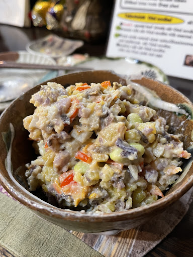 The potato salad was delicious. Everything else was really bad. We were served the chefs speciality which was served 30 minutes after everything else. It was a mess of all sorts of ingredients that do not go together. A vegetable pancake (which I usually love) that was soggy and didn't taste good. Topped with hot strawberries, carrot flakes and a lot of sour brown sauce that made it completely inedible.