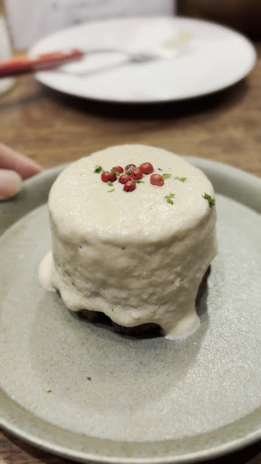 🍄出汁大根 自家製ポルチーニソース 500円 こちらも衝撃的旨さのおしゃれおでん。マストオーダーよ❗️和とイタリアンコラボ🇮🇹心に染みまくりました❗️