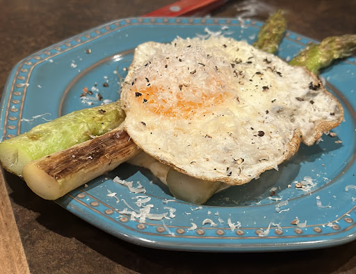 🥒春アスパラ ゴルゴンゾーラ 800円 みんなが頼みます❗️カウンターにグリングリーン眩く活けられたアスパラをみたら、頼まずにはいられません❗️アスパラってこんなに甘いの❓と驚く。濃厚なゴルゴンゾーラソースが、野菜料理と思えぬ満足感