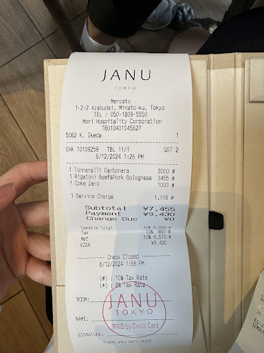 Read moreGood Italian restaurant in the Janu / Azabudai Hills complex. Overall this is a very nice restaurant with amazing design, space and lighting. The pasta was very good (although very small portion), the fish tartar was delicious (but I wish the dish was completely raw and not slightly cooked) and the bread / focaccia offering was very limited for an Italian restaurant. I realize this is a brand new hotel with new restaurants and staff, so I do think they still have a bit to improve. Be more generous with the portion sizes, have a large bread / focaccia selections, think about adding more olive oil options (or a tasting) and have more small sides to the...