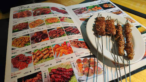 この店では、羊肉をテーブルの上で、木炭で焼いて食べられる。羊の前足、後ろ足、あばら骨、さらに1頭丸ごとまで注文出来る。あばら骨で4,000円位で4人で食べるのにちょうどいい量になる。 羊のほかに、牛、豚、鶏などの串モツ焼きも各種ある。クミンがたっぷり利いた中国串焼きなどもある。