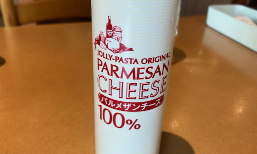 卓上にはジョリパオリジナルのパルメザンとタバスコ的なヤツ。
