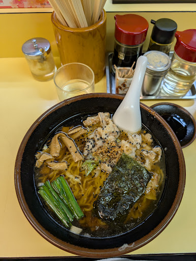 Hot, light soy sauce broth with garlic. The garlic is stir-fried with pork belly and green onion. The garlic is not pungent or harsh. This is mixed with hand-rubbed noodles and really tastes good. After finishing the noodles, I was surprised to see the amount of garlic in the bottom of the soup. It is indeed a one-of-a-kind ramen that I have never had at any other restaurant. To be honest, I feel like I could make ramen like that at home, but it's so good, I have nothing to complain about. On the other hand, the gyoza (dumplings) are full of vegetables and have a gentle taste. They go well with the ramen. The combination of the waitresses at the counter is also good. The service is also good, cheerful and polite. The only thing that is not so great is the narrow space between the seats. The restaurant itself is also small, so do not bring in carry-on cases or large bags or luggage, as they will be a nuisance to the restaurant. There are several single female customers, so it may be that this restaurant has a lot of fixed fans. If you like ramen, it doesn't matter what gender you are. Unlike the orthodox soy sauce ramen in Ogikubo, this ramen is full of originality and can only...