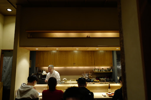They served us really nice food with lovely equipment, cutlery, glasses, etc. I did not see any plastic or throwaway stuff. Neither can I relate to comments on dirty bathrooms or open doors. I am not saying others lied, but it was not like that, when we were there! nice waitress who spoke English to us and explained a little, the chef himself (I am pretty sure it was him and not his trusted second) did not really speak English which I found unfortunate. Nonetheless they were happy to answer any questions we had. as far as quality is concerned: I have only been to a Michelin star rated restaurant back home in Germany, which I found to be quite different. Back home it was more of a super sophisticated adventure, here they cared little about etiquette or rules, it was more about the food. Portions were a little bigger and ingredients a little less extravagant - they pick the best of what the sea and plants can offer and transform it to something special. I guess it's just hard to compare the two of them. Only the beef I was a little disappointed with... but that's just me, someone else said he or she liked this one the most. I want to add, that the two couples, who were dining next to us, were both non-first-timers. I consider this to be a good sign of quality, one US-couple returned for a second time and the other ones were locals who come by every 3 months and said they tried various restaurants in the area - "this one is the best". after some glasses of sake we had very nice talks with the waitress and the other couples, almost a familiar atmosphere which I really enjoyed. we really enjoyed the food, company and atmosphere! The reason why I rate 4 instead of 5 stars, is the following: considering the high price I would have expected even more of a treatment - more explanation, more show, more value (other than food quality). I paid around 260 USD via omakase online booking plus drinks, maybe you can get it cheaper booking directly. I think, about 100 to 150 would have been a reasonable price for food and expertise considering how well you can easily dine everywhere in Japan. For the rest I would have loved to see more of a cooking show, maybe having the chef explain where he got the food and so on.