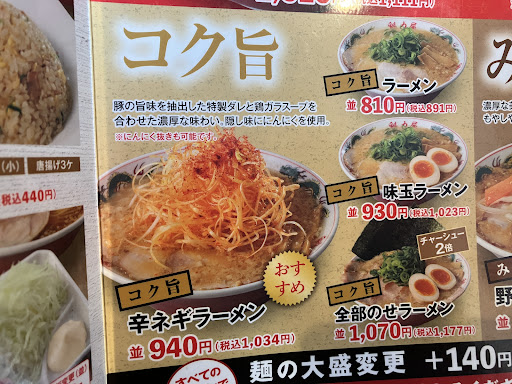 メニューを見ると、醤油、コク旨、味噌、辛味噌の四味展開。醤油と味噌はイメージ付くけど、コク旨って何?メニュー記載の「豚の旨味+鶏がらスープ」の文章見てもイマイチ分からない。