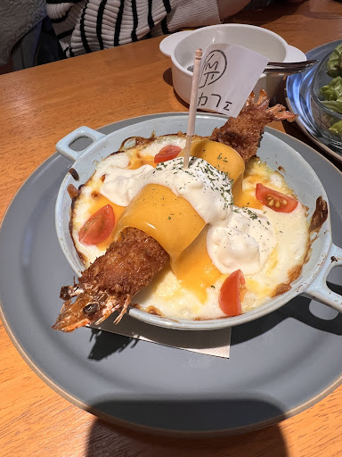 Let’s stick with the food.. having lived in Japan for nearly ten years, I understand sometimes when getting a sandwich, you only get half a sandwich but when you do it should be substantial size. While the sandwich was nice this ‘set’ meal was not filling at all. The soup I believe was heated in a microwave and came out served a little warmer than room temperature. The Ebi fry was really nice (on the gratin dish) however I believe they were maybe using older oil to cook with. With the combination of the warm AC, and the strong scent of cooking oil our eyes started stinging (I’m not sure if anyone else had this issue). Please note my wife is Japanese, so this isn’t just an opinion of a gaijin. After leaving we noticed our clothes smelt of oil too! However for me the above is not what brings my rating down to a 2*. It’s the depressing feeling the staff portray. 2 out of the 3 workers did not smile once whilst we were there. On a bright sunny Sunday afternoon, a visit to a local cafe should be somewhat energizing and have a feel good factor. This place seriously lacks in this area. I had my 3yo son with me and learnt this cafe is not really a place to bring toddlers as they do not have high chairs nor food that can be consumed for this age child. I feel this is more a ladies lunch type of place. Still has great potential, but I wouldn’t consider returning after...