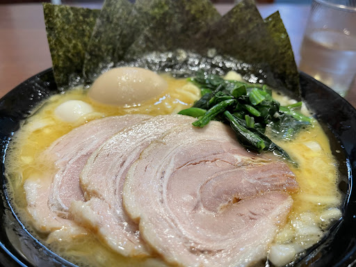 Read more豪麺MARUKOの15時に間に合わず、探したら通し営業のここへ ラーメンデータベース86点だが、チェーン店なのかなぁ?町田商店とかと同じ系列なのか?何もわからず15:10くらいに入店 先客1名のみ、後客は1名 MAXラーメン1,050円也をオーダー カウンターとテーブル席がありましたが、荷物も多くて傘もあり、ゆったりテーブル席に座らせてもらいました。 5分くらいで着丼 うわっ丼小さっ 比較のためやすまほライターと一緒の写真を載せます。 所謂あちこちの家系よりも一回り小さい気がしますね、今後はメジャーを持参して写真撮るか? 見た目は具だくさんでいい感じですよ。 スープ熱々で舌を火傷しそうに。 お店でスープ炊いてるのかはわからず。 でもスープ旨いですね。なかなか好みの味、ウズラとニワトリの味玉付き、チャーシューは3枚かな、ほうれん草も。海苔も枚数多かったですね。 ライス無料ですよ、言われたのですが、それはいつものごとくスルー こじんまり小さな丼はやはりライスと一緒に食べるよう適正化されてるんだろうなぁと思いますね、本家二郎やえどもんどやHEROて、丼サイズ普通じゃないですか。あれを私の中では基準にしてるから家系はなぜ丼が小さいのか不思議でならない、いつから小さくなったのか?また京都から進出してきている魁力屋とか丸源も小さいよね。 丼小さいとラーメンだけで腹が膨れないんですよ、私はラーメンしか頼まないから。 同じくスープ原価高そうな澄んだ系のラーメン屋さんでここまで小さい丼には出会ったことがなく、いつも不思議に思います。 それはともかくお味は美味しかったですよ、ビールと一緒にかきこんだりするのがいいのかもね。 お店出る時、『ご馳走様』言ってドアー閉めようとしたら女性店員が出てきて、ありがとうございます、て言って閉めてくれたなぁ、暇な時間だからの対応だとは思いますが。 ラーメンはとても美味しかっ...