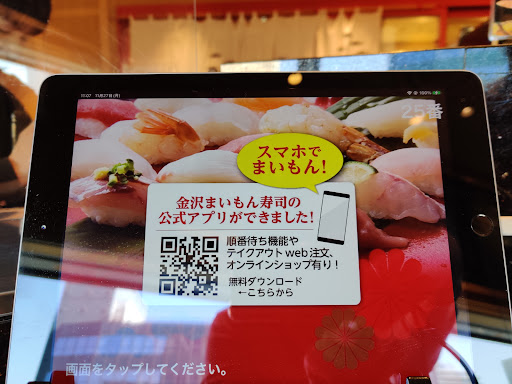 The fish was very fresh and they had an interesting selection. As they were selling fish from Kanazawa, they offered their Kanazawa special soy sauce. I like the ordering system via the ipad. They had an English menu. I was able to select with or with wasabi, regular rice or less rice portion. I spent almost 6000¥ for 13 pieces of sushi. The pricing is a conveyor belt style where they chip the plates and the waitress comes around to scan the stack and charge you accordingly. The gold plate was the most expensive at 1000+¥. And the cheapest was closer to 200+¥.