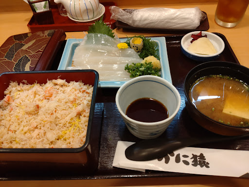 Read more2022年9月平日午前11時半過ぎ。中葛西の環七沿いにある「かに猿」を訪問。駐車場は裏に8台有り。駐輪場は無し。 午前11時半開店と書いてあるが既に予約席を除いて1階は満席に近い。2階もある。女将さんがフロアを担当してカウンター越しにこの道40年の料理長がいる。 オープン直後の雰囲気でもなくどの席も既に食べ終わったぐらいの感じで談笑している。客の年齢層は高くお金に余裕がありそうな人ばかり。 かに料理だけでなく、ふぐ料理、肉料理、鍋料理などが食べれる。どれも高額だがランチは2000円前後とリーズナブル。