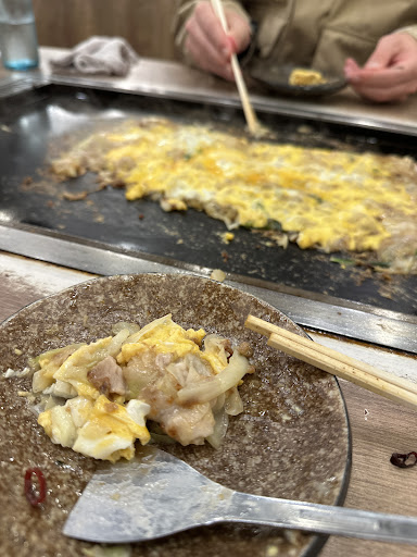 We walked up right before final call and after agreeing to a woman that we would both order drinks and entrees she sat us at a table (not mad about that at all, we have learned that when a place says it is closing at a certain time they are likely stopping service a bit earlier than that—our experience so far). Then we ordered and got drinks and they made a little omelet to get us started. So perfectly cooked. Then they made the noodles which were so good that we almost wanted another order. Then the woman that let us in came and made our monjayaki. Her name is Akari and she took the whole experience to the next level! She made sure we had everything we wanted and told us all about monjayaki! She was absolutely amazing!! We would go back just to visit her she was so nice and so fun to chat with. We didn’t totally know when or how to eat it and she coached us without a fuss. So kind of her. Then when we were leaving she even offered to spray us with deodorizer because of the grill smell. Not mad about that at all! The place was great. But Akari made...