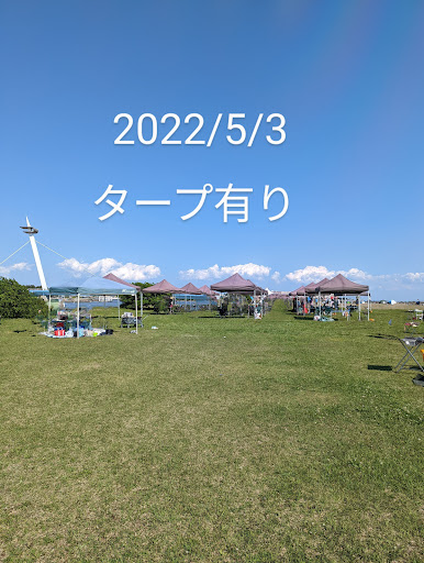 [悪いところ] #1 持ち込みのタープ、大型テント禁止。 例外は、3*3m2程度のポップアップテント、申込制の有料貸出タープ(テント)。 なお、持込のテントにペグは打ってはいけないらしい。 風で飛んでいくと危ないからだそうです。 もっともらしいが、指定管理者(都の人間が天下って いる?)の有料貸出品がOKで、持込はNGな説明になっていない。どっちも風が強かったら飛んでいくのに。