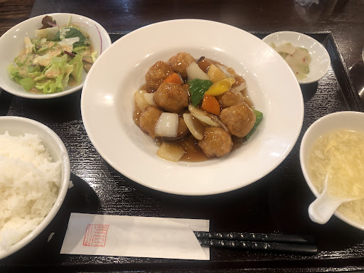 シェフと配膳係りの女性2名(+1名不定期でバイトの子)で運営。 私は酢豚定食を注文したのですが、黒酢の程良い酸味とシャキシャキのお野菜、豚肉もカリッと中はくどくないジューシーさでとっても美味しかったです。 餃子は1つが大きくて手作り感がありました。 お野菜たっぷりの餃子です。