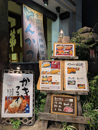 This was some of the best katsu and fried oysters I've ever eaten! The coating was crisp and more flaky than most, and the pork was incredibly tender! I ordered one of the weekend/holiday specials, a pork roast katsu (rōsu katsu) and fried oysters (kaki fry) set (teishoku). This comes with pickles and salad that can be refilled freely (which is great because I prefer salad to rice with my katsu), a lovely dark red miso soup (akadashi), and rice (shiso or plain). I had the salad dressing at the table, Yuzu Shoyu (Citron and soy sauce), which I used for the salad and also my katsu. They also have a regular katsu sauce and a spicy katsu sauce, which were also delicious. The fried oysters were served with a wedge of fresh lemon, and they tasted divine with just that. I genuinely felt they didn't need tartar sauce or any other trappings. Honestly some of the best oysters I've had in awhile, and I come from a region famous for its oysters. Of course, it's pricier than a fast food katsu place, but it's also probably the best katsu I've ever had. The atmosphere is lovely as well, though it does get crowded. I made a reservation before going, though when I arrived at noon it wasn't crowded yet. If you don't want to wait around, I recommend making a reservation, especially if you're coming in the...