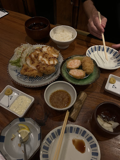 Location: Located in the basement of a corporate building, surrounded by other restaurants. The place: Cosy vibes with wooden tables and simple wall decorations, creating a warm and inviting atmosphere. The food: Absolutely outstanding. We ordered the tonkatsu set, potato salad, shrimp, and cream crab, all were excellent. The tonkatsu had a crisp, light, airy coating that wasn’t oily at all. The dishes felt freshly made, which explained the slightly longer wait time (totally worth it). Meals also came with complimentary radish side dishes. The price: Our total bill was around 6,000 yen, which is very reasonable for the quality and for being in Ginza.