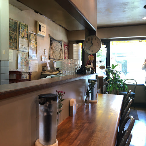 Read moreカレー好きの間で激辛カレーとして知られるカーナピーナさん@祐天寺 激辛と言ってもチャレンジ系ではなく店主さんがインド料理を追求する中でかなり辛いカレーになっただけのようです。お店は喫茶店のような外観とインテリア。BGMは弦楽のクラシックが流れて、ご夫婦お二人で経営されている店内は落ち着いた雰囲気です。平日開店まえの11時25分ごろ着、開店時間になっても開かないし人気を感じないので不安になりましたが、33分ごろから店内の音楽とお水を用意している音が聞こえてきたので安心しました。 ランチのカレーはチキン、ポーク、豆2種の4つだけ。外に貼りだしてあるセットメニューにはマトンがあったのですが店内メニューには見当たらないのでお聞きしたら、マトンはディナーだけとのこと。残念ですが、チキンにしました。辛さは3段階で真ん中のセミホット(いわば中辛)が相当辛くてデリーのカシミールぐらいのインパクトがあります。ホットはとんでもなく辛いと想像できますが、裏メニューとしてベリーホットもあるそうです。 カレーソースは別盛りで並々と盛られて穏やかな表情ですがスパイスのツブツブ感と玉ねぎが溶け込んでるトロミが見て取れるので、美味しさへの期待が高まります。野菜から出た甘味と粘度が程よく美味しいですが、辛さはかなりシャープで強い‼️...