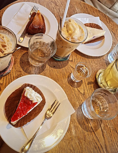 Came to this place spontaneously for some drinks and cake and it definitely didn't disappoint! It's a quite small space so we had to wait for a little bit until a table opened up but it adds to the cute and calm presence of the café~ The drink menu is huge so it's safe to say there's something for every taste - no matter if it's coffee, tea, softdrinks or anything else. I've had the iced cinnamon milk tea and even though it wasn't sweet enough for me at the beginning, I added some syrup my friend got for her coffee and it tasted amazing! All the cakes seem to be made fresh as well (I think there's a selection of cakes that changes daily) and they're heavenly...