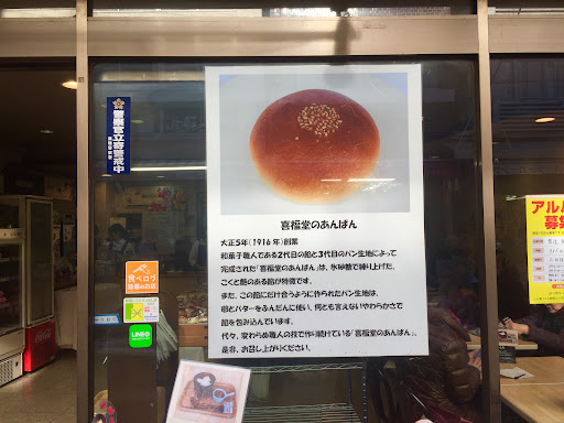 その後、関東大震災を機に、巣鴨へ移転し、 昭和36年に、「喜福堂」と店名を変更します。 この頃から、あんぱんの製造をするようになり、現在まで続いているお店です。