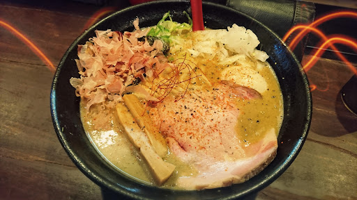 (I think) their soup stock is made with katsuoboshi (bonito) and has an amazingly unique flavour. They serve a limited amount of a special extra thick ramen every day which is really delicious, very moreish and is definitely my recommended choice.