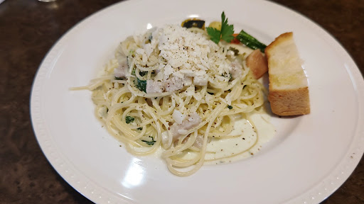 Read moreチューリップ公園で満開のチューリップを見て羽村駅に向かう途中、住宅街の中にlunchの青いのぼりの店が目に止まり、店のそばまで行ってみたら、店から出てきたお客が満足顔だったので、気になって入ってみました。 店に入ると、テーブル席は先客と予約で埋まっていて、カウンターに案内されました。 店内は、木造で古さは目だちますが、清潔感は保たれていました。 メニューを渡され迷いましたが、カウンターの端にラクレットチーズが鎮座しているのを見つけ、チーズが食べたくなり、自家製パンチェッタと王様チーズのパスタセット1600円と大盛200円をお願いしました。 最初にサラダを出されたのですが、味が濃い野菜でした。ちゃんと葉野菜の苦味が感じられ、リンゴの甘味がアクセントとなり、単なる前菜ではなく完成されたサラダでした。 パスタは、絶品でした。特に自家製パンチェッタが...