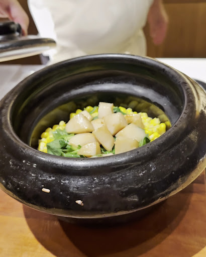 ◆食事 ・帆立と玉蜀黍の土鍋ご飯 帆立をバターでソテーしてあり、香ばしさとコクが口いっぱいに広がる。バター香る土鍋ごはん、大好きすぎる。