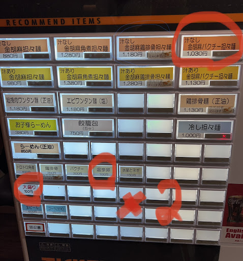 I get the soupless tantanmen with cilantro, oomori and two almost raw eggs. Great combo. You can also tell them spiciness level 1-5. Five isn’t crazy and that’s what I do. The other shop was a bit spicier actually. I throw in four scoops of the chili oil on top. Then dump on both eggs and mix it up. The shop gives free rice which I use to soak up the remaining sauce after finishing off the noodles.