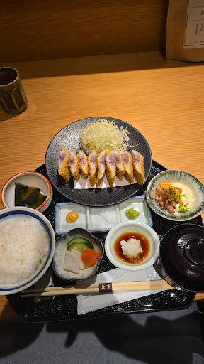 Read moreThe deep fried horse mackerel set was delicious. The Kinkume staff were very welcoming. They helped me use the machine to place my order. And they provided a card that explained the meal so I ate it properly. The portions were perfect: fish which tasted fresh, rice, cabbage, miso clam soup (very mild, not fishy), and condiments. The whole experience was fun and tasty! I would recommend Kinkume to any hungry traveler who passes by, whether you are between flights, staying at the nearby hotel, or simply out shopping. Cost was ¥2,800 (less than USD $20) and the meal included a...
