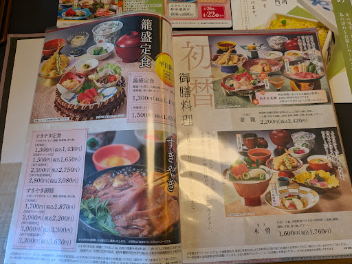 ランチタイムは色んなメニューがあって、予約時にメニューも決めます。 10人くらいはすき焼きランチセット(米国牛) その他は刺身定食とか、「木曽」っていう和定食的なヤツとか。
