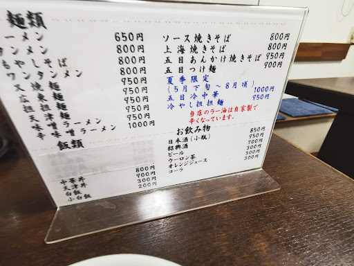 ◎最初チャーハンの美味しい店でヒットしたので行ってみた。食べてみて美味しいと同意します。(此処がまず載ってない板橋区のチャーハンの美味しいお店リストは全く信用出来ない)。確かに炒飯の美味しい店はいっぱいあります(ただし基本板橋炒飯系が多い)が、此処のは本格的で別格です(他のメニューも本格的な中華料理で美味しいですが…)。たっぷり油を使い熟練の鍋振りで炒めたチャーハンは、シンプルな塩味だがパラパラでかなり美味しい。具は基本玉子・長ネギ・グリンピースで、炒飯はチャーシュー、エビ炒飯・エビカレー炒飯はエビ、カニ炒飯はカニがそれぞれ入る。肩の怪我で入院・リハビリで半年休業後、昼営業再開してましたが、夜営業及び炒飯メニューが復活しました。平日昼間はエビカレー炒飯や坦々麺を頼む方が結構居た。全体的に量多めで、食べ残したら頼むと持ち帰り出来そうだ。辣油は自家製。火曜休み、第3週は火水休み。 エビ炒飯¥850、具は卵、長ネギ、グリンピースにかなり大きめのえび7~8個(卵白か片栗粉まぶして薄く表面がさっくり中ぷりっぷり)。エビの香りよく美味しいチャーハンメニューの中でも個人的にはいちばんお勧めです。 ラーメンはシンプルな中華料理店の醤油ラーメンで、少し醤油風味強め。ワンタンメンはラーメンに具入り雲呑入り。タンメンは野菜たっぷりで鶏ガラ塩スープで塩加減絶妙。 中華丼は白菜大きくカットでやや甘めの薄醤油味。 天津丼はふっくら柔らかな卵と、かなり甘めの甘酢あん。 坦々麺は甜麺醤・芝麻醤をスープでしっかり溶いた感じかつ自家製ラー油で辛み付け、具はネギ・サヤインゲンと大量の肉そぼろ。舌先には甜麺醤の甘味、じんわりと唐辛子の絡みが口に残る。 麻婆豆腐は四川の方¥1,300を食べたが辛みは想像したほどではなかった。柔らかい黒豆みたいのはトウチかな、山椒が効いていたが多分和山椒、大量ラー油も赤いが辛過ぎるほどでは無く、ご飯と合うし、そのまま食べも辛旨かった。春夏秋冬のより個人的に好みだった。普通のほう¥1,100は基本同じでトウチや山椒などの調味料が無い分自家製ラー油の辛みが際立つ。 テーブル上のメニュー表には載ってないか、カウンター上にレバニラ炒め、麻婆ナス、ニラ玉など¥1,100の一品料理メニューがある。入口と2箇所の黒板に当日の定...