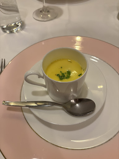 アミューズその1は、ムール貝を使ったサフラン風味のポタージュ。 濃厚な味わいと、サフランの風味が素敵な1品でした。ムール貝もとても柔らかく煮込まれていて濃厚な味わいでした。
