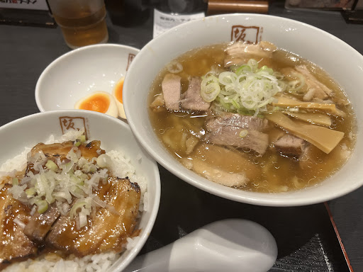 Read moreチャーシューが1140円で13枚乗るのに対し期間限限定SNS割引で+60円で10枚増しの23枚、坂内肉祭りを応援する為12時45分にMEGAチャーシュー麺信仰者の列に並ぶ。 大手町店はガラス張りで外から空席が確認できる地下街の繁盛店として昼食時には長い列をなしている。回転率はいいが日本語に堪能な中東系外国人スタッフが忙しそうだ。 時間が来た右奥のテーブル席の様だ、並んでる際注文を取りに来ているのでサーブは早い。 チャーシュー麺➕サービスライス➕日本酒会津ほまれ、スープは豚骨の旨味をしっかり引き出したお馴染みの醤油味。 ご飯にチャーシューを5枚ほど乗せ坂内を味わう。薄切りの肉は口溶けが良く塩味が心地良い。最近は麺屋武蔵のつけ麺専門だが多忙な美術館勤務時代、優しいサッパリ味を求め足繁く通った15年前の自分を思い出した。 まだまだやっつけねばならない肉の軍団が眼下にある。スープをを啜りチャーシューを口いっぱいに頬張る。今でも俺は肉食系男子だ。 会津ほまれを頂こうスッキリした辛口で昼飲みにはぴったりの酒だ。 ワシワシと坂内を食べ進め麺とスープを完食。 懐かしい味に再会できた、秋になったら国立新美...