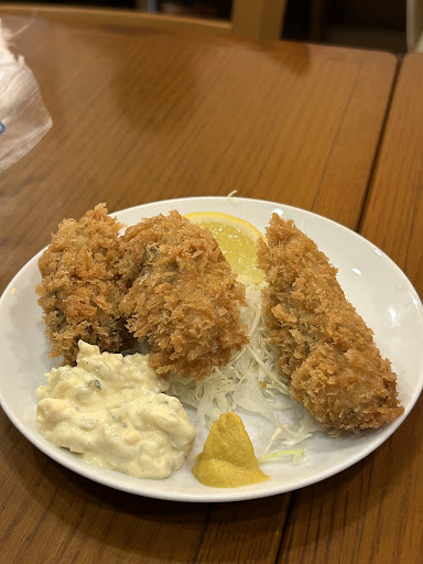 The lady took the order and the guy is the chef. We ordered crab cream croquettes (2 pieces), hamburg set, and extra fried oysters (3 pieces). Everything was so delicious! The crab cream croquettes were perfectly seasoned and very creamy. Not greasy at all. The hamburg also was very delicious. But the fried oysters were the star. Must order if you ever visit!
