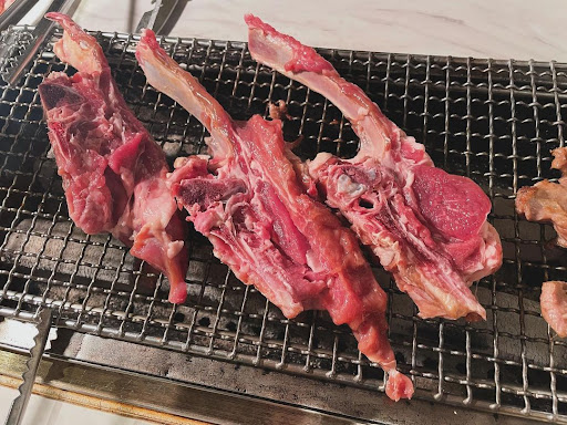 ◎羊肉料理の迫力と美味しさ 「中国料理 喜羊門」の一番の魅力は、何といっても羊肉料理の迫力と美味しさです! メインとなる「羊の背中焼き」は、4キロもある骨付きの羊の背肉を豪快に炭火で焼き上げる一品。 最初は丸ごと提供され、その迫力に圧倒されますが、すぐにスタッフの方が適度な大きさにカットしてくれるので、食べやすくなっています。 羊肉は鮮度が良く、臭みもほとんどなく、ジューシーで柔らかい食感を楽しめました。 炭火で香ばしく焼けた肉は、付属の特製スパイスをつけることで、さらに味わい深くなります!大人数でシェアするのにぴったりの一品だと感じました。