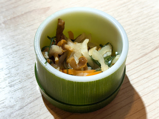 〈ドリンク〉 【アサヒスーパードライ】:638円 【角ハイボール】:638円 【知多ハイボール】:968円 【メガハイボール】:968円 【JJ】:580円 . 〈メモ〉 4人でよく飲むグループの定例会/1次会利用として伺ったお店 25年1月.土曜日の夕方16時に予約しての訪問でした . ・お通し お通しは「お浸し」となっていました 大根や人参、キノコなどの構成で味わいとしては非常にスッキリタイプ 食べ終わりにスッと柚子の香りが抜ける上品な味わいでとても美味しかったです!