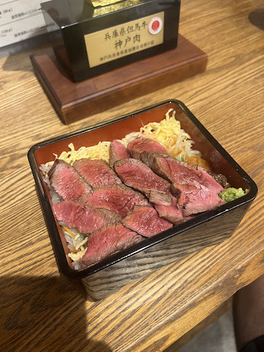 Their Kobe beef advertisement caught our eye while looking for lunch near Nakimise-dori street in Asakusa. Both my sibling and I never tried Kobe beef before. Since it was our final day here, we thought why not try it out? What also finalized our decision was the affordable pricing, which is usually unheard of for Kobe beef. We both ordered a bento lunch set for only ¥5500! It came with fresh salad, two pieces of Kobe beef sashimi, two piece of Kobe beef sushi (tender & tough), miso soup, and a bento box with four slices of Kobe beef, scrambled eggs, assorted vegetables, and a side of wasabi on top a bed of warm rice. Words can't explain how delicious the whole meal was. Compliments to the chef!