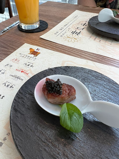 To our surprise we could reserve a place very few days a head, even though most Kobe beef restaurants are full, but the place is actually very authentic, clean and lovely. The Chef and the staff are very friendly and kind! explained all dishes and options, showed us the certificates and the meat beforehand! suggested all the options and cooking before delivering the dishes. Really interesting and tasty dishes with high variety. Dishes came one after the other when we finished eating and not everything at once, which made all dishes hot and nothing cooled down while we eating. Dishes were very tasty, of course the kobe beef steaks (sirlion and fillet) were included. The staff were also explaining how its better to eat each dish, what to add/top on the food and what not. Was not hungry when i left. I did not expect to be hungry for such a price but I've been surprised before. As a big man I need a big dish or dishes to be satisfied, and here I left not wanting to eat till dinner! I cant say if it was cheap or expensive, iv'e seen dishes much more expensive and dishes that were cheaper (but without kobe), both in this restaurant and in others. All i can say is we paid 15k yen each for the courses, and we were both satisfied.