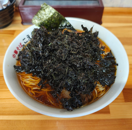 平日のランチに利用。早めに行ったけど外で少し待ってました。人気店ですねぇ。 八王子ラーメンを楽しみにきたのですが、食券購入で大・大・大失敗。バラチャーシュー麺に海苔増し、玉ねぎ増し、ライスにしたつもりが、岩海苔トッピングにしてた…めちゃくちゃ後悔。 岩海苔をどかしてスープと麺をいただくと、確かに行列が納得できるくらい美味しい。スープがあっさり醤油の旨みとコク、ここにストレート麺がとてもマッチするからだと思う。 岩海苔は、もう見た目通りの味で、正直言ってラーメンの味を大きく損ねます。ほんとに大失敗でした。玉ねぎのシャキシャキや風味も壊します。 一方でバラチャーシューはしっかり美味しく、ご飯のお供にも最高。 岩海苔無しで、味は星5、満点です。 お店は狭く、サービスは普通なので、総合は星4とし...