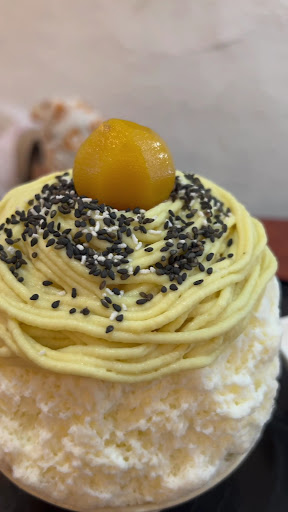All the kakigori are milk base with various toppings, so the variations in flavor are relatively subtle. They have some weird rules, like the fact that tables which can easily fit 4 and have 3 stools can only seat 2, or that certain specials can only be ordered if you order a large size of some other kakigori.