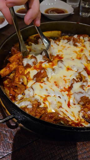 All of it was delicious and flavorful, we especially enjoyed the dak galbi for the balance of cheese and spices (but it wasnt too spicy!). Look at the cheese pull, we had an ample amount of both chicken and tteokbokki in it. Everything was split between 5 people making it very reasonable for everyone!