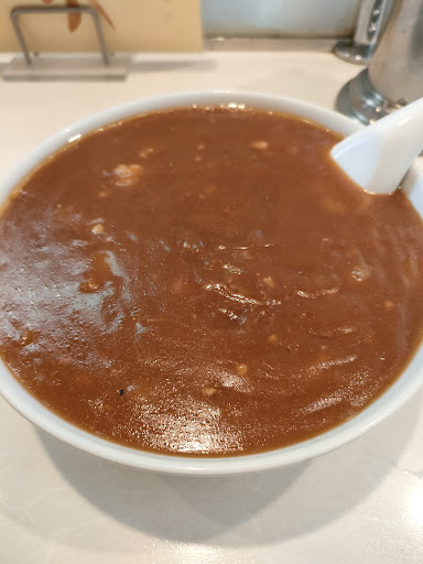 Read more至高の美味さでしたね!今回食べたのが肉味噌ラーメン大盛り(700円+150円)甘い、辛い、最後に旨いと三拍子揃った至高のラーメンで、最後の最後まで熱々に食べられる小松亭唯一無二の餡かけラーメンです!お店の開店を狙って土曜日の11時15分頃にお店に到着しましたが、すでに常連さん達が席の8割程を埋めていますね!店内には、奥にカウンター席とお店入口付近にテーブル席がありますが、混み合う時間帯は、相席になりますので覚えておいて下さいね!店内に入店すれば女性店員さんにテーブル席を案内されて相席の様な形になります!直ぐにメニューを眺めてから、狙いの肉味噌ラーメン(ジャージャー麺)大盛りを注文します!待っている間にカウンター席が空き女性店員さんが機転を利かせてカウンター席に案内してくれました!カウンター席に腰を降ろして厨房を覗くと女将さんらしき女性が忙しそうに料理を次から次とテンポ良く作っています!流石は、歴戦の料理人だなぁと思いながら眺めていたら時間的に7分程度で小松亭唯一無二の肉味噌ラーメン大盛りがカウンターに到着です!肉味噌ラーメンは、丼ぶりに入ったカレーの様な見た目ですが、箸を入れると熱々の湯気と甘辛い香りのする食欲誘う餡かけラーメンです!丼の奥深くには、麺が鎮座しているので、麺を箸でシッカリと解してから熱々の餡とスープを飲むと!美味し!甘辛旨い餡とゴマ油の香りが鼻腔奥に抜ける美味い餡で甘さの中に辛さがあり徐々にに辛さが主張して来る癖になる肉味噌ラーメンです!肉味噌ラーメンを食べる時の注意点は、麺を啜る時とスープと餡を飲む時に勢い良く啜ったり飲んだりすると蒸せます(笑)割と常連さん達も咳込んで蒸せながら涙目になって食べていましたね(笑)当然、私も例に漏れずに最後のスープを飲んでいる時に蒸せてしまいましたよ(笑)直ぐに女性店員さんが機転を利かせて冷たい水をコップに入れてくれて助かりましたね!そんな病みつき度合いの高い肉味噌ラーメンをユックリと味わい麺を完食です!最後に蒸せながら旨味の詰まった餡とスープを味わい完食です!総評で言えば奥行きのある旨味タップリの餡で、お世辞抜きで本当に美味かったですね!餡の具材の挽き肉と玉ねぎの刻みが良くお互いの旨味を相乗効果の様に高める様な存在です!そして餡の隠し味のゴマ油の香りと甘辛さが癖になる中毒性高い食べるな危険の絶品の餡!一つ一つの素材や味付けが緻密に計算された様に感じる唯一無二の絶品肉味噌ラーメンだと素直に思える昼飯になりました!皆様に布教したい!餡かけラーメンこそが至高!餡に溶けた肉、野菜の旨味を素直に感じられる小松亭の唯一無二の肉味噌ラーメンを是非味わってみて下さいね!絶対的に自信を持ってお勧め出来る至高の肉味噌ラーメンでした!それでは、至高の存在の肉味噌ラーメンに素直に脱帽と敬意と感謝を込めて、本当に美味しかったで...