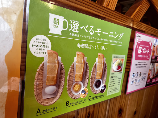 Read more日曜日の朝、利用しました。焼きたてのトーストとコーヒーを楽しみに日曜日の朝のゆったりとした時間をすごしたいと思い、初めて利用しました。店内に入ると席は満席ではないけど、待っているお客さんが一組。席が空いてるのになかなか案内してもらえず、スタッフを見るとのんびり仕事をしている様子。案内係じゃないからか、待っているお客さんに目線はやるが、特に何もしない。アルバイトばかりだった。ようやく10分ほど待って案内され、すぐにモーニングをオーダーした。ドリンクが出てくるのに15分くらい、その後パンが来ないので、厨房の方を見ると、カウンターにパンの入ったバスケットが置いてある。だけど運ばれず置かれっぱなし。パン冷めちゃうよ、と思っていたら案の定、しばらく待って出されたパンは冷たかった。子供が「パンが冷たいよ。家のパンの方がいいよ(悲)」と言った。ちょっとひどいなと思い、社員を呼び、新しい焼きたてのトーストに変えてもらった。もう二度と行かないです。朝から不愉...