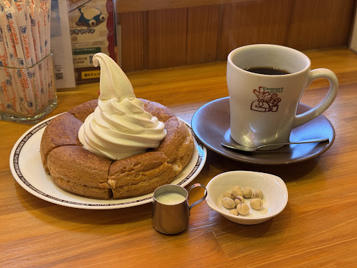 Read moreシロノワール(単品) と、コメダブレンド たっぷりサイズを注文しました。シロノワールは公称 933kcal もあり、はちみつをかけるとカロリーさらにマシマシです。見た目ソフトクリームの量が尋常ではないので覚悟が必要です笑。その分食べた後の満足感は折り紙付きです。スプーンとフォークしか持ってきてくれませんが、デニッシュを切りづらいのでナイフも頼んだ方が良さそうです。 なお日曜日の 11:30 に現地に着きましたが、名前を書いて席に案内されるまで 30分かかる盛況ぶり。レジ前に延々と通路の方を向いて座っている人がいるとおもったら、すべて待っている客でした。恐るべしコメダ。 注文は今時というかスマホアプリで完結しスムーズでした。スマホアプリがあるなら、来店予約もできるようにしてほしいです。 店員のミスが目立ちました。1人様でテーブル席でもカウンターでもどちらでも良い、を選んでいたのに、次の順番の方を店員が先に呼んでしまい、マネージャーっぽい人に指摘されて、誤っていたのが1点。シロノワールにハチミツが付いてこなかったのが2点 (写真に写っていたのはそのためです)。また隣の席の方が、店員に「ご注文は以上でよろしいでしょうか」と聞かれ、まだチキンが来ていないと言っていたのが...