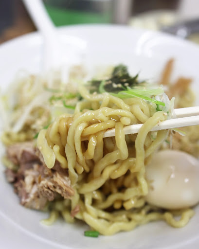 たくましい太麺の上にはネギと細切れチャーシュー、 メンマ、もやし、ゆで卵、胡麻、海苔という具材。 油そばにしては、さわやかなビジュアルだが 底に沈むタレはけっこう濃厚。 言い方をかえると少し塩っぱい。 味がいいだけに少しもったいない。 タレ薄め(少なめ)って言えば対応してくれるのかな。