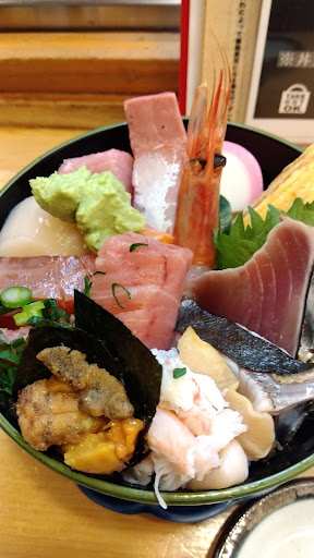 向かってみれば記憶通りのビル地下のお店で、店名が変わったのかわからんけど、とりあえず行列は無いから入ってみようガラガラ…地下に広がるお店は奥行きもあってかなり広く、店内は明るく良い感じ。 お客さんは程よく入ってます。 おし!じゃあ海鮮丼ご飯大盛り頼んじゃお!