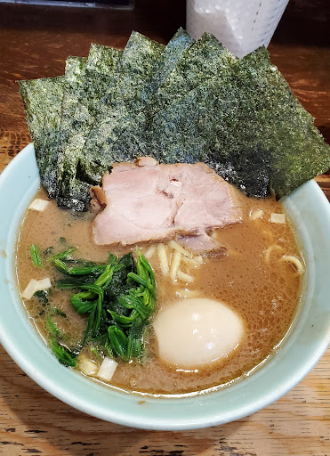 Read moreとにかく濃厚な豚骨スープの家系ラーメン。そして飯が進む! ラーメン700円、中盛り+100円、大盛+200円と比較的リーズナブルな価格設定。そして昼間はライス無料でおかわり自由、さらにきゅうりのキュウちゃんが食べ放題なので、その気になればエンドレス(笑)。 初訪問のこの日はラーメン(中)を、好みすべて普通で注文。店員さんの案内に従い、無料ライスを店内中ほどの大釜から自分で盛り、キュウちゃんを乗せ、ゴマをおろしてラーメンを待つ。 ほどなくラーメンが到着。トッピングはオーソドックスに海苔、ホウレンソウ、チャーシュー。そしてネギが散らされている。 まずはスープを一口。噂通り濃厚、というかドロドロなほど超濃厚である。しかし余分な臭いはない。丁寧にじっくりとこしらえてくれているのだろう。ガツンとコクが来る。しかしちょっと塩辛すぎるか。薄味だとコクに負けてしまうかもしれないが、もう少し薄味のほうが好きだ。そして脂はほとんど感じない。さらさら系の家系スープでは、脂が浮いているのだが、このお店のスープではその様子がない。もしかしたらスープのコクの中に溶け込んで同化してしまっているのかもしれない。 スープは大変特徴があるが、麺はスープのコクと比べると、もう少し太いほうがいいかと思った。けれども、太すぎるとコクをまとってくどくなってしまうか、微妙である。 一通りデフォルトで食べたところで、家系の作法に則り(笑)胡椒、ニンニク、豆板醤で味調整。胡椒をパッパッ、ニンニクを匙2杯半投入して、丼になじませる。そして豆板醤を匙1杯投入。豆板醤は溶かずにチャーシューの上に留め置く。 次におもむろに海苔をスープに沈め、しなったところで豆板醤と合わせてライスを包む。家系のお楽しみの海苔巻きである。とても濃厚なスープなので、海苔にも飯にもしっかりとまとわりついて、ボリューミーなうまさ満載だった。海苔は3枚。2枚目の海苔には、キュウちゃんも巻き込んでみる。濃厚な中に、酸味の利いた味が入り込んでとてもうまい。そして3枚目のキュウちゃん巻きでいただく。 つゆが塩辛かったとはいえ、うまみで飯が進む。これはうまいが体に悪い・・・(汗)。ラーメン屋で思わず飯をお替りしてしまった。飯+スープ+キュウちゃんでまさにエンドレスに陥りそうだった。 唯一残念だったのは、チャーシューがちょっと冷たく、硬かったこと。もう少し脂身の多い柔らかめのチャーシューだったら、海苔+チャーシュー巻きも楽しめると思う。 次回は、うすめ・普通・...