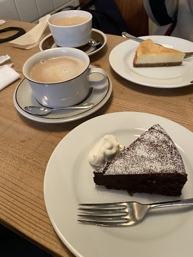the coffee and chocolate cake were well nice and I have no complaints there! At the same time, I was a bit disappointed at the distance coldness with which the staff treated us, such as by quickly going over coronavirus-related things in a low tone and then disappearing. The man never smiled. I feel like, as a small cafe, a bit more warmth would be much appreciated — a cold politeness makes for an awkward encounter. That said, the female employee (owner?) was nicer.
