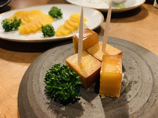 詳しく✍️ ▶お通し 新生姜 燻製した新生姜を柚子胡椒味噌でいただきます 初っ端から燻製キターヾ(°∀° )/ー! お口の中が燻製とは、、、を覚えました!←